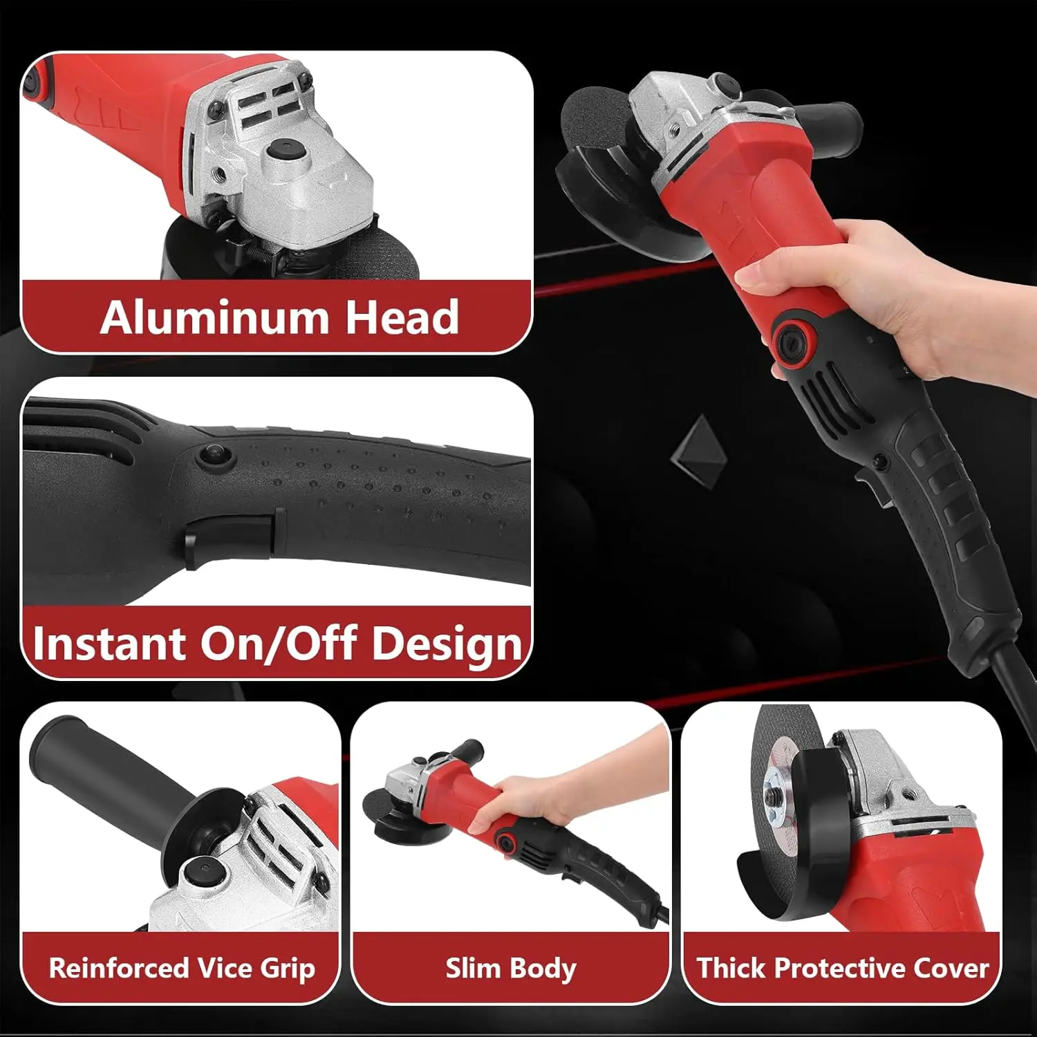 6 Gears Angle Grinder 1300W Handheld Cutting 220V Electric Power Tool 125mm Polishing Machine Grinder for PVC Cutting