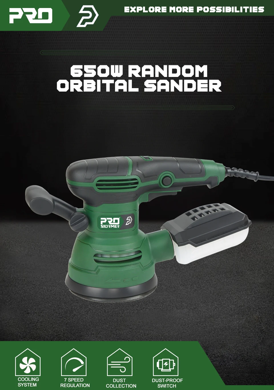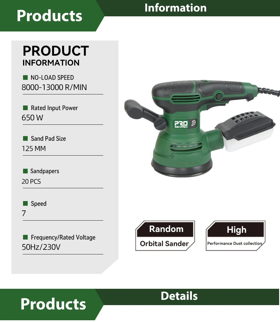 650W Electric Sander 230V Woodworking Grinding Tool Variable Speed Sander with 125mm Sandpaper Car Polishing Machine PROSTORMER