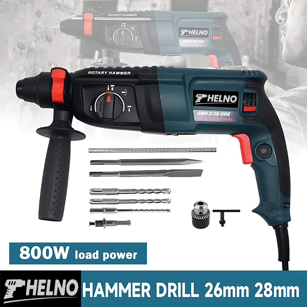 Powerful HELNO GBH2-28 Electric Demolition Hammer, 800W Motor, SDS-Plus, Heavy Duty for Construction Breaking Work